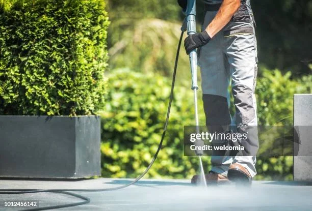 “Pressure washing of driveways, sidewalks, and outdoor surfaces to remove dirt, grime, and buildup”